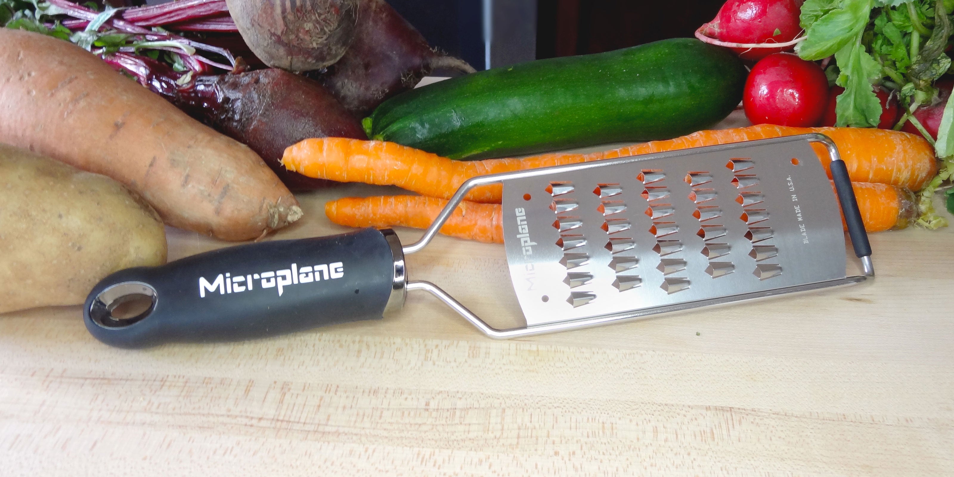 Elevate your culinary creations with the Microplane Gourmet Series Julienne Grater! Perfect for effortlessly creating precise, uniform strips of your favorite vegetables and cheeses. Unleash the gourmet chef within!