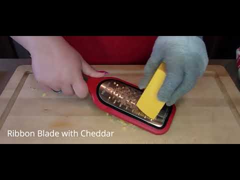 Apples, Butter, Cabbage, Carrots, Chilies, Chocolate, Coconut, Hard and Soft Cheeses, Onions, and Zucchini. This tool shreds foods into ribbons, when you pull the food back and forth across the blades. The result is similar to a ribbon, and is preferred when baking, or cooking.